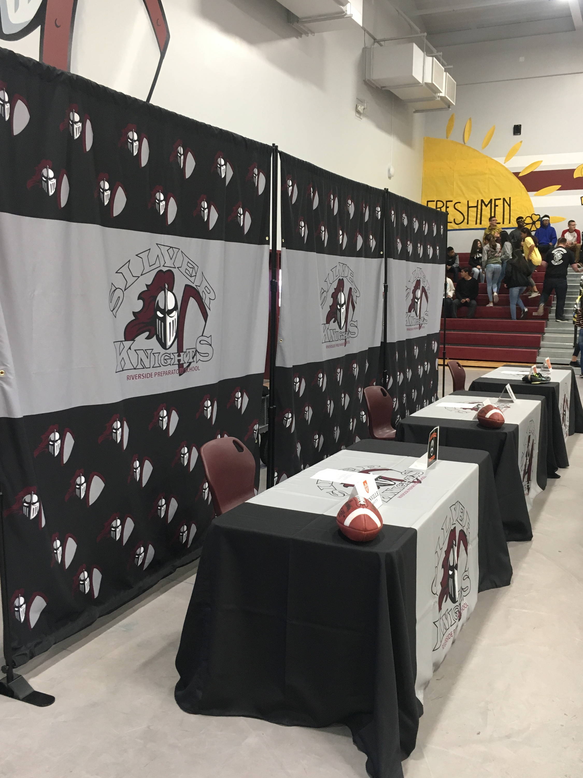 A branded table cover instantly professionalizes your space, providing a polished look while neatly concealing supplies.